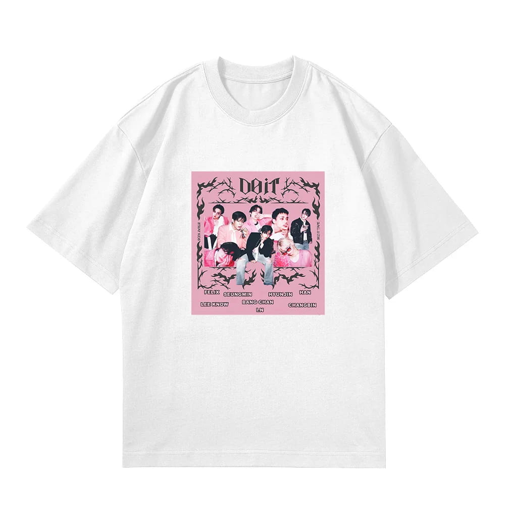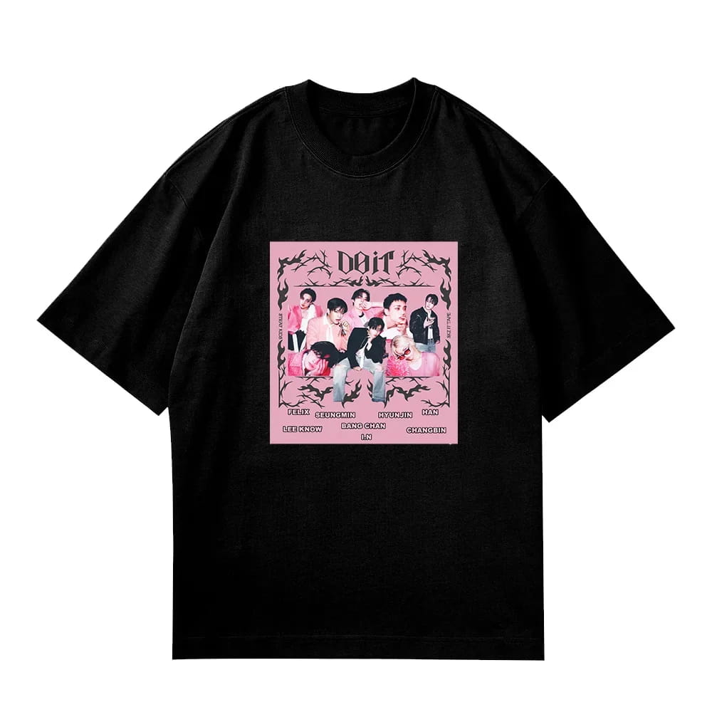 Nie ma lepszego sposobu na pokazanie swojego bias’a, ulubionego zespołu lub fandomu – niż koszulka z nadrukiem inspirowanym idolami i muzyką, która daje Ci energię na co dzień. To obowiązkowa część garderoby każdego fana K-POP — idealna na codzienne outfity, spotkania fandomowe, koncerty, zawody dance cover lub jako prezent dla innego fana!